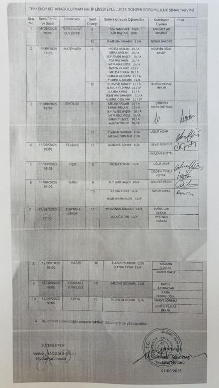 2025 Eylül Sorumluluk Sınav Tarihleri
