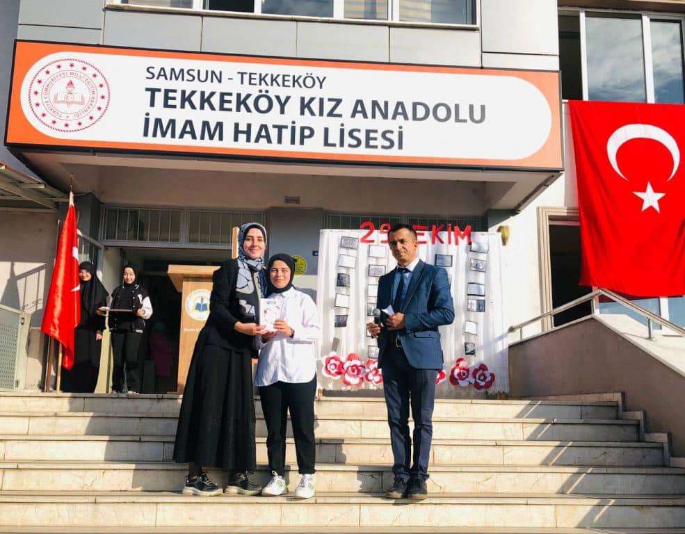 Okulumuzda öğrencilerdeki hem okula uyum sürecini etkinleştirmek hem de öğrencilerin başarılı, ahlaklı, terbiyeli ve saygılı olmanın teşvik edici davranışlar olduğunun önemini kavratmak amacıyla her ay kişilikli, başarılı, dürüst ve ideal öğrenci davranışı sergileyen öğrencileri "Ayın Örnek Öğrencisi" olarak seçilmektedir. Bu amaçla yapılan değerlendirmeler sonucunda EKİM ayının örnek öğrencisi 11/A sınıfından İKLİM DEMİRDAŞ seçilmiştir..Kendisini tebrik eder başarılarının devamını dileriz.